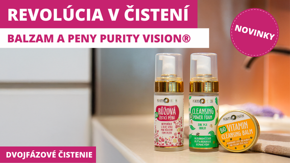 Moderný spôsob čistenia pleti – double cleansing. PURITY VISION® prichádza hneď s tromi novinkami pre dokonale čistú, hydratovanú a vyživenú pleť bez vysušenia –Bio Vitamin cleansing balm, Bio Ružová čistiaca pena a Bio Cleansing Power foam.