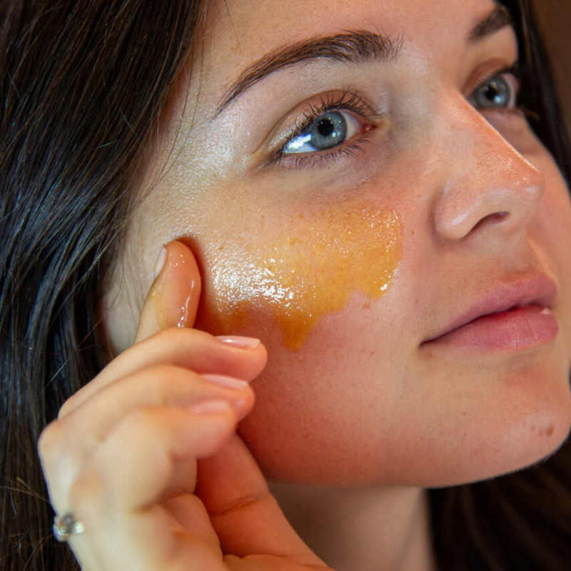Avokádový, mandľový a kokosový olej dodávajú výživu a hebkosť. Jojobový olej pomáha udržiavať prirodzenú rovnováhu pleti, zatiaľ čo rakytníkový, mrkvový a kurkumový extrakt ju rozžiarujú. Vitamín E pôsobí ako antioxidant a pomáha pleť chrániť pred voľnými radikálmi.